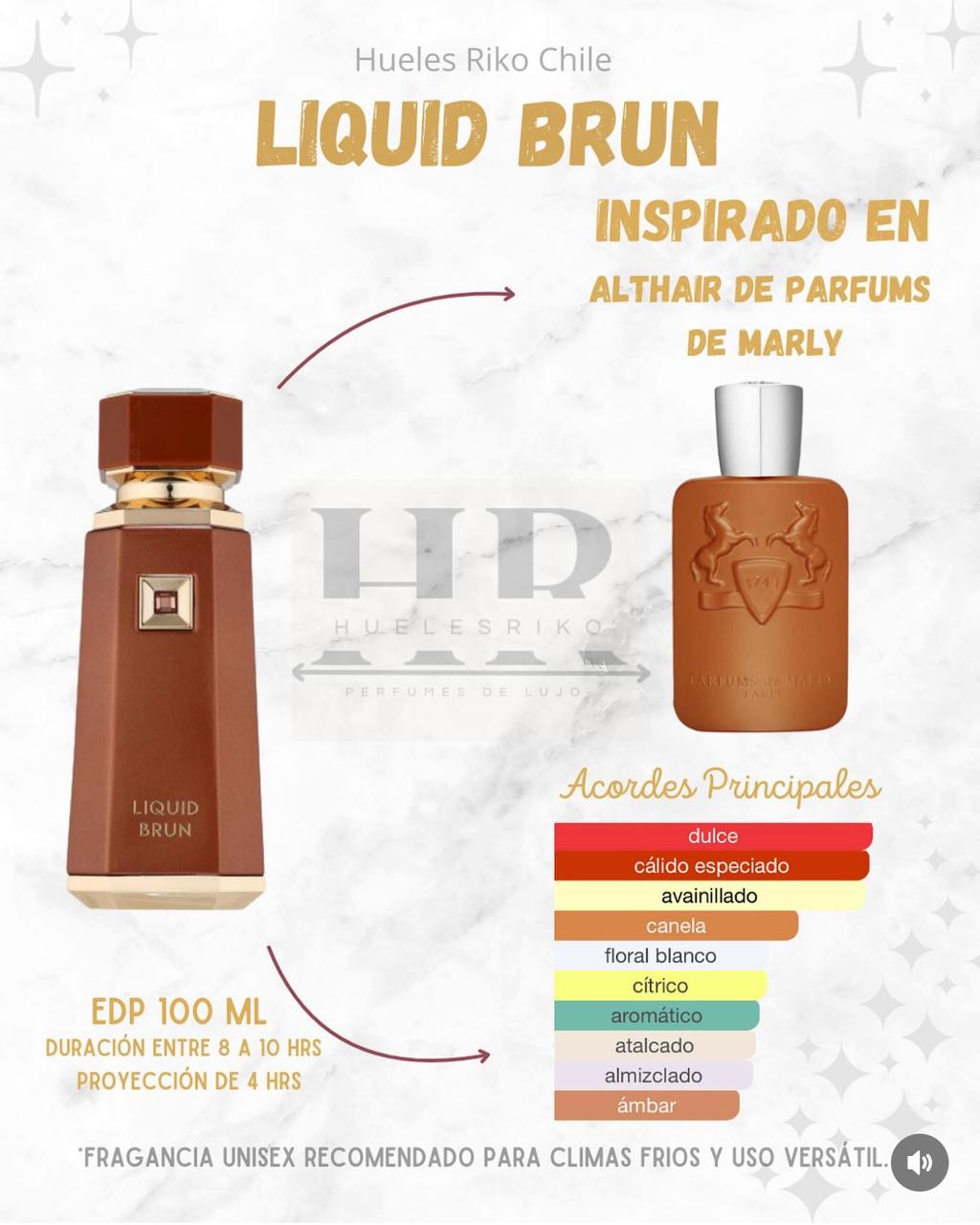 ★★★★★Liquid Brun de French Avenue es una fragancia de la familia olfativa Amaderada para Hombres. Esta fragrancia es nueva. Liquid Brun se lanzó en 2024. Las Notas de Salida son canela, flor de azahar del naranjo, cardamomo y bergamota; las Notas de Corazón son vainilla Bourbon y elemí; las Notas de Fondo son praliné, ambroxan, madera de gaiac y almizcle.